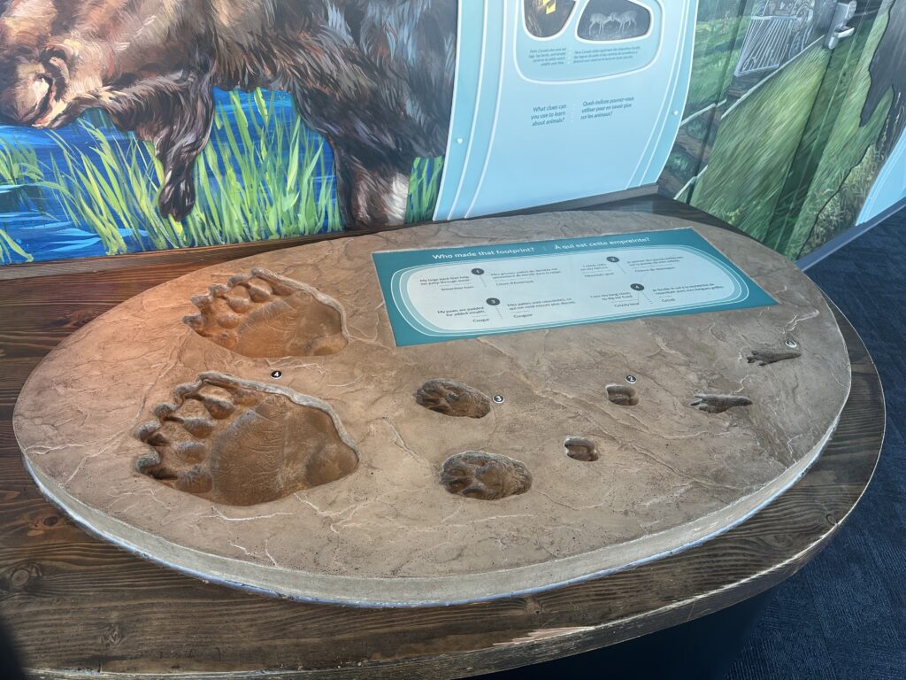 Recently, I went to Banff, Alberta and spent some time at the Gondola Interpretive Center. I wanted to include my experience because the interpretive centre had so many cool visuals that would be fun to show a class. For example, in an activity we prepared for a grade 2 class, we had to find information on an animal each student chose, and one of the facts we included was that animal poop is called scat! While at the interpretive centre, I found a display that showed different animals’ scat. It was cool to see because the animal scat in the display was also from local animals in Cranbrook. The interpretive centre also had fun posters that shared what some signs are that animals are nearby, animal prints, how animals in the park are tracked, and so much more!
